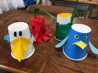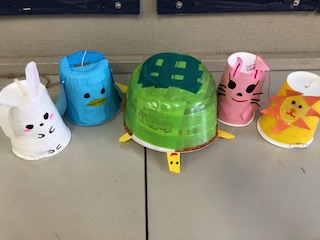 ?図画工作の時間に紙コップなどを使って、工作をしました。