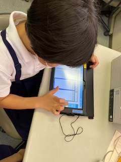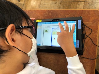 「昆虫の育ち」についての学習で、タブレットを使って表に分類しました。
