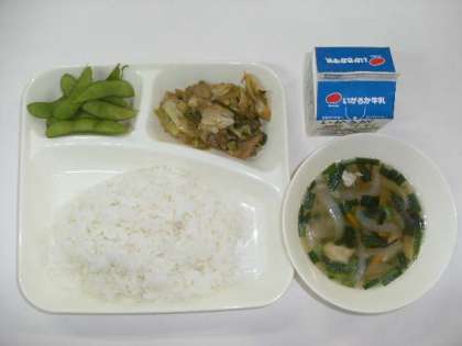 よくゆでて余分な脂をとった豚バラ肉と、しょうが、にんにく、白ネギ、キャベツ、ピーマンをいため、テンメンジャン、砂糖、塩、こいくちしょうゆで味つけしています。少し濃い味つけのこの献立は、汗をたくさんかいた子どもたちに大人気です。