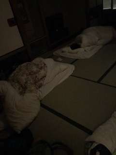 就寝時間となり、みんな電気を消して寝る準備万端です。
