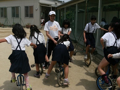 聖和小学校では、聖和タイム(20分休み)になると、先生も運動場に出て子どもといっしょに遊びます。