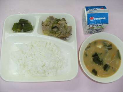 意外にも久しぶりに登場のみそ汁は、とうふ、キャベツ、にんじん、もやし、えのきたけ、わかめ、と具沢山でした。子どもたちにも大人気のお味噌汁。残食はほとんどありませんでした!