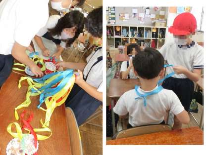 5年生はこの日に向けて1年生へ送るメダルのプレゼントを作りました。