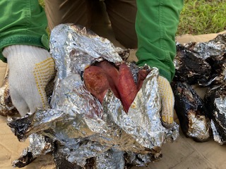 地元の方からの差し入れのとれたて紅さつまいもをお宿の窯で焼いて頂きました。
