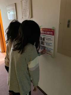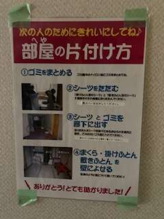 起きてすぐに、布団の片付け方の確認をしています。