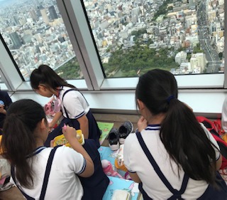 ハルカスの展望台で、子どもたちが楽しみにしていたお昼ご飯を食べさせてもらいました!