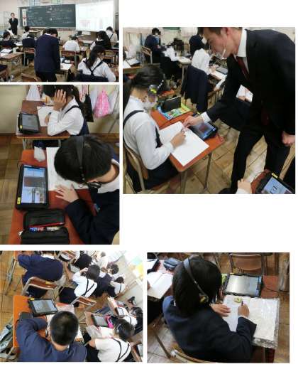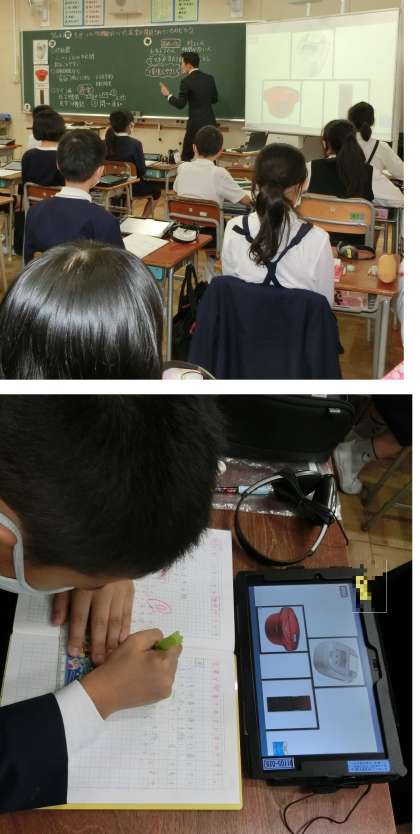 毎回のタブレット操作にも慣れ、本時ではヘッドホンで映像資料を見ながら子どもたちはしっかりとノートに調べたことを書き込むことができました。