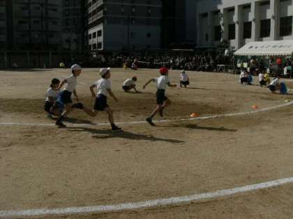 力いっぱい駆け抜ける3年生の力強い走りです。