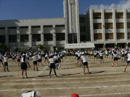 3年生のタオルを使って、リズムにのったダンスです。