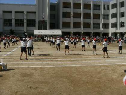 元気いっぱい、みんな一緒に。2年生のダンスです。