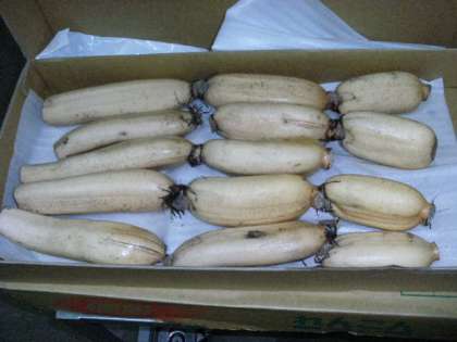 冬が旬のれんこん、だいこんを使用したカレーライスです。調理員さんが食べやすいように柔らかく煮込んでくれています。れんこんは、写真ように節が繋がった状態で納入されています。