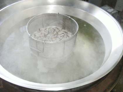 煮干しで出汁をとった(いりこだし)みそ汁です。煮干しを30分以上水につけたあと沸騰させ、弱火にして30分ほど煮ています。スッキリとした上品な味に仕上がりました。