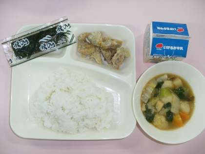 多くの子どもたちが大好きなからあげ!今日は給食前の休み時間の風向きが給食室から運動場へ・・・「今日の給食はからあげ!?」と、鼻をくんくんさせた何人もの子どもたちに囲まれました(^^)