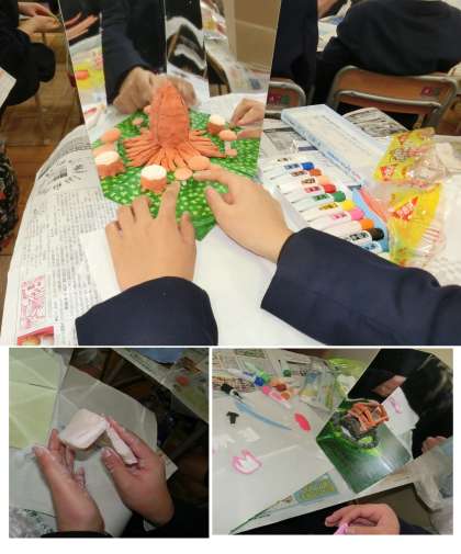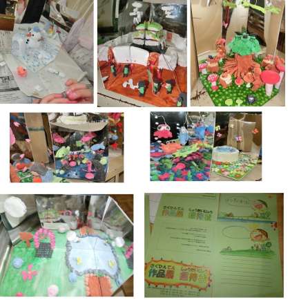 作品展に向けて5年生の子どもたちは、2面の鏡を利用し、粘土や針金を使った「ミラクルミラーステージ」の作成に取り組んできました。