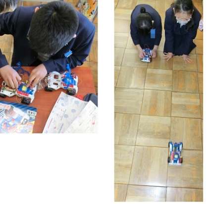 なかなか動かず、友達と相談しじ教え合いながらする姿や、何とか1人で動かそうと頑張る姿がみられました。