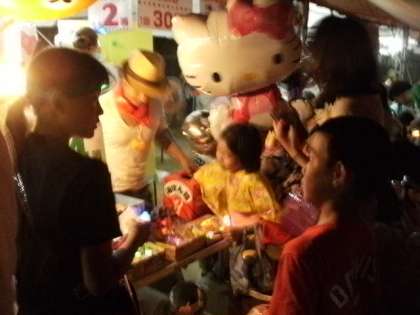 聖和地区あげての盆踊り大会だけに、町の雰囲気もお祭りムード。焼けるような暑さも吹き飛ばし、ぞくぞくと聖和の子ども達も集まってきました。