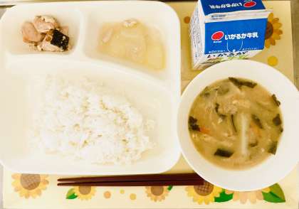 とうがんは7月〜8月が旬で、水分を多く含む野菜です。今日は鶏肉と一緒に煮込み、しょうが汁で風味をつけています。季節を感じられる献立で、子どもたちにも人気がありました。