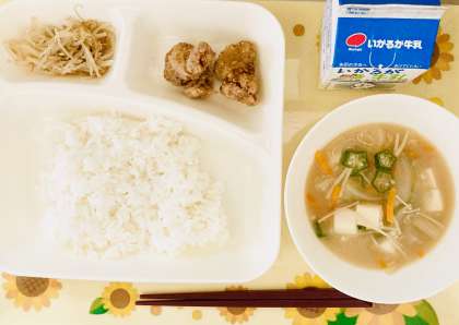 しょうが汁、料理酒、濃口醤油で下味を付けた豚肉に、片栗粉をまぶして油で揚げています。程よい醤油味が子どもたちに大好評で、パクパク食べてくれていました。