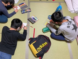 隙間の時間には、はがきや日誌も書いています。はがきが無事届くのが楽しみですね!
