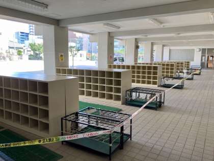 1学期の終業式から7月30日までの期間、大阪市教育委員会の営繕班の方々に来ていただき、靴箱の塗り替え作業を行いました。厳しい暑さの中で、とても大変そうでした。