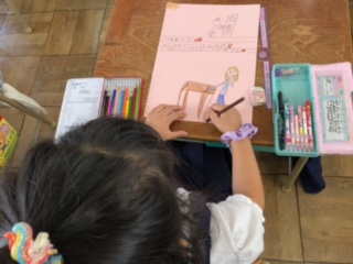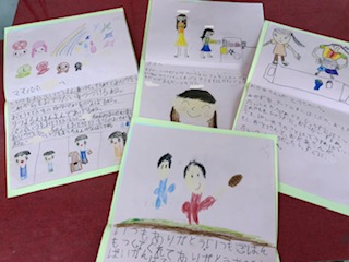 などの感想とともに、おうちの人からも「ありがとう」や「自分でできることが増えてよかったね」などの言葉をもらい、子どもたちは「お手伝いをすると家族も自分もハッピーになる」ということに気づきました。学習の最後には、家の人にお手紙を書きました。