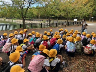お弁当を食べたあと広場であそび、大阪城公園を散策しました。そして森ノ宮駅から電車に乗り、みんな元気に学校に帰ってきました。