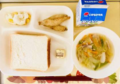 食感が良く、頭からしっぽまで丸ごと食べることができる献立でした。