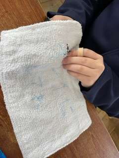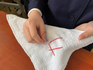 これまで習った縫い方を駆使して、メッセージを刺繍しています。