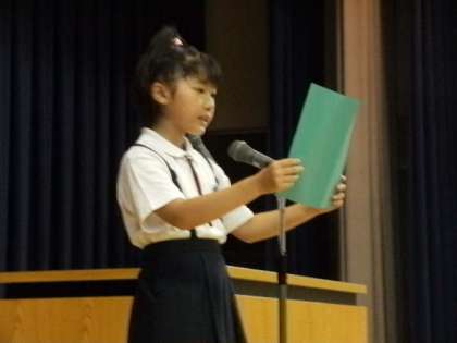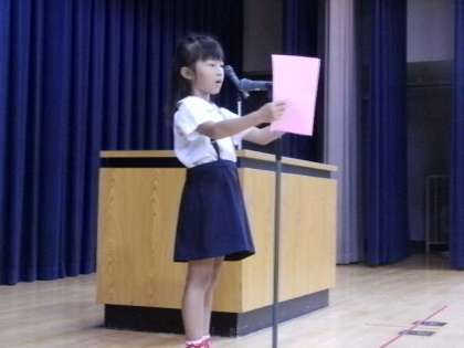 始業式では2年生と4年生の代表の児童が2学期の抱負を発表してくれました。