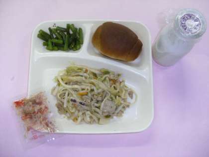 豚肉、いかの他、キャベツ、たまねぎ、ピーマン、にんじんと野菜もたっぷり使っています。食べるときに、一人一袋あてのかつおぶしをかけることで風味と香りを添えます。