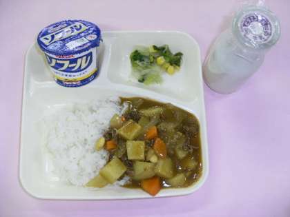 1人30グラムのレタスを塩ゆでし、コーンとともにさっぱりとした味のドレッシングをあえて作っています。