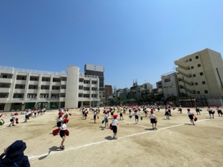 他の学年の人に、ダンスを見てもらい、拍手をもらうと嬉しそうな顔をしていました。