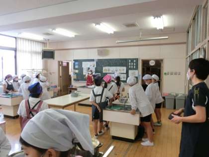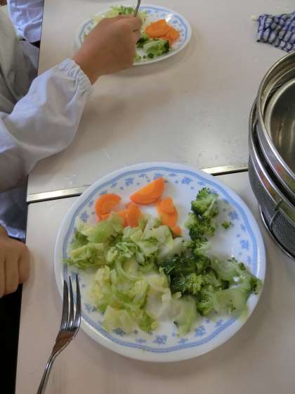 子どもたちは、緊張して初めは戸惑いながら野菜を切っていましたが、だんだんと慣れてきて大きさを揃えて切ることができていました。
