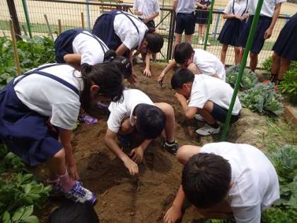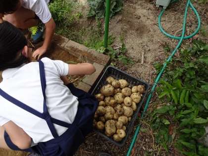 今日、6年生は大きなじゃがいものつるをはさみで切り、備中で土を掘り起こし、土の中からじゃがいもを収穫しました☆とっても大きな、おいしそうなじゃがいもがたーくさん♪子どもたちはたいへん喜んでいました!!