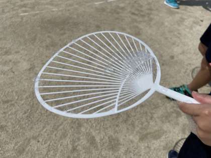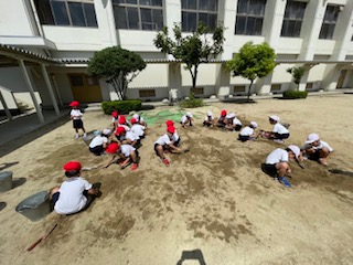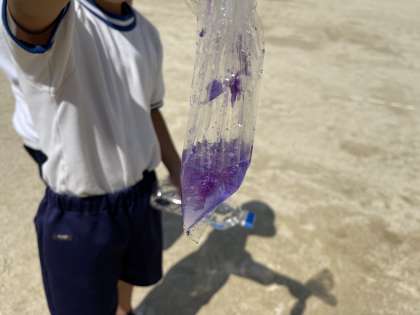 あさがおの花を使って色水を作ったり、しゃぼんだまをしたり、砂場で水あそびをしました!