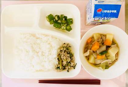 梅肉を使って調味液を作り、オーブンで蒸したオクラと和えています。ほのかに感じる梅の風味で、暑い季節にも食べやすい献立でした。