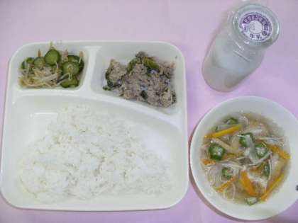 そうめんとオクラが入った、七夕をイメージさせるような汁ものでした★