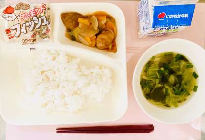 角切りの豚肉、玉ねぎ、にんじん、ピーマンを使ったボリュームのある献立です。酸味が控えめで食べやすく、どの学年でも大好評でした。ピーマンが苦手な子も食べやすかったようで「見て!見て!ピーマン食べたよ!」と、お皿を見せにきてくれました。