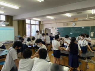 5種類の水溶液を区別するために、見た目を比べたり、においをかいだり、蒸発したものを見比べたりしました。