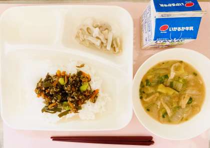 豚ひき肉、もずく、切り昆布等のおいしさが合わさって、ご飯のすすむ味付けでした。