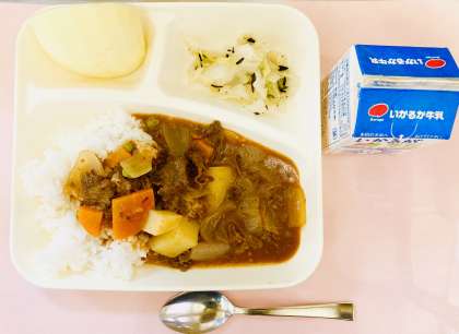 今日のハヤシライスは、小麦粉を使わずに米粉を使っています。小麦アレルギーの子どもたちも同じ献立を食べることができます。