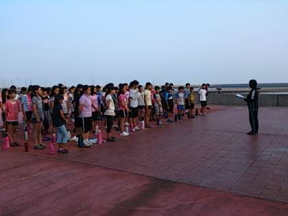3日目の朝会の様子です。全員元気に出席です。
