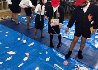 今日の1〜3時間目にロング集会「秋の味覚を救い出せ!パーティー」があり、にこにこ班でお店巡りをしました。