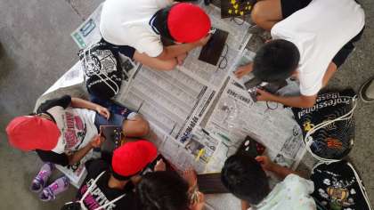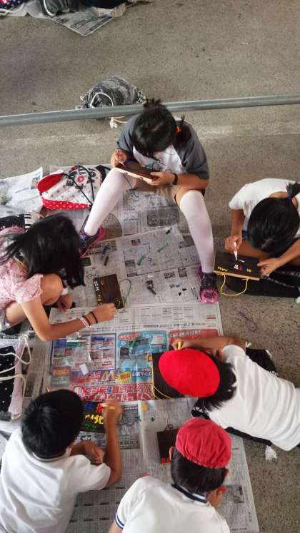 最終日は朝食、部屋の掃除をした後に焼き板工作を行っています。