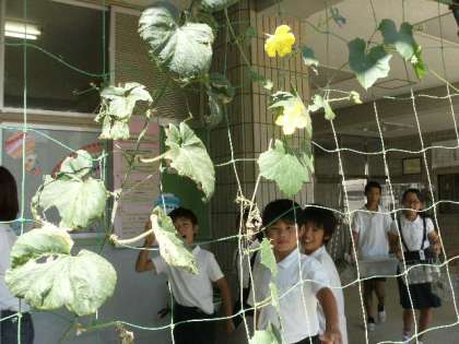 聖和小学校の運動場には、なにわの伝統野菜も植わっています。