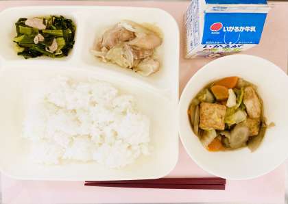 ごぼう、にんじん、白菜等、色々な野菜を使用しています。1年生が「ごぼう、おいしかった!いっぱい食べた!」と、嬉しそうに話してくれました。