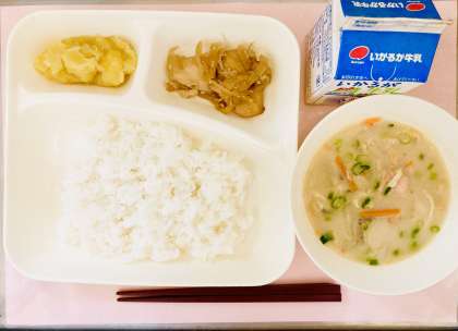 酒粕の他に赤味噌、白味噌を合わせて使うことで、食べやすい味付けに仕上がっていました。寒い季節にぴったりの体が温まる献立でした。