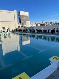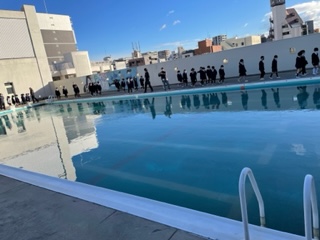プールは表面が少しだけ凍っていて、子どもたちは、「プールが凍るなんて!!」と驚いていました。