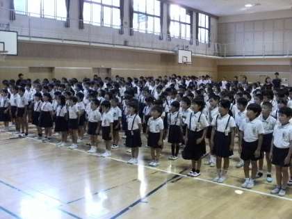 9月24日(火)、全校朝会では、新しく4人の教育実習の先生が来られました。運動会も近くなり、若い先生が10人も増え、聖和小学校はパワーがあふれています。
