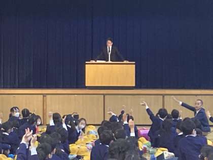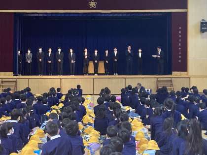 新たに聖和小学校に来た先生方や6人の転入生の紹介がありました。